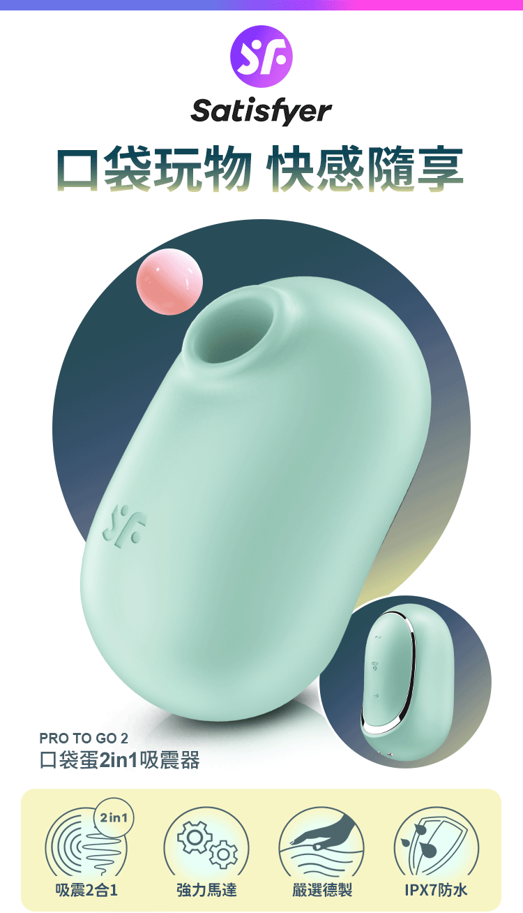 品名:Satisfyer|Pro To Go 2|口袋蛋 吸吮陰蒂震動器 薄荷綠